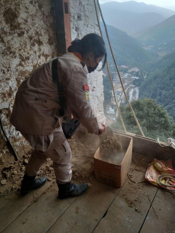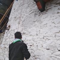 The main work of Scouts was to help in the transportation of items required for the renovation from the highway towards Cheri monastery. however after reaching the venue the scouts noticed that the area could have used a bit of cleaning along with some organization of materials because the area was very disorganized due to the renovation of the monastery taking place. Therefore the scouts took the initiative to not only clean but also to white wash the walls of the monastery.