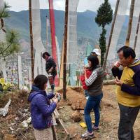 Volunteer for eracting prayer flags