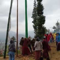 With coordination of Rinpoche we all the fellow deciples took path to eract prayer flags at TandinNye.