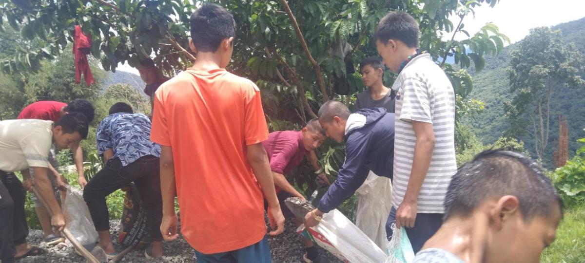 With the support from my students we could help the community in carrying stones to the construction sites.