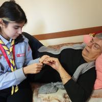 Our scout Melissa Diana Genceli , had worked during 1 day at a Nursing Home. She took some treats like cookies while going to make them happy. She met here very sweet people. They told their experiences and she also told her scouting ones. She read book for them, cleaned rooms and hall, helped one to make nail care, brought water, prepared tea, visited one more elder people at their rooms, too a walk with them in the garden, helped taking their medicines,.....