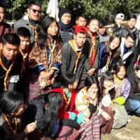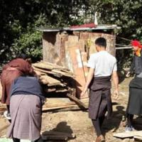 The community service at Cheri Monastery, where we helped the monks to collect sand and stones for the construction of meditation house.