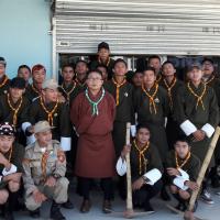 Thimphu Thromede Scout Association volunteered to prepare and hoist flag on the way to Thimphu during state visit of Indian Prime Minister.