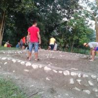 Volunteering in making toilet to school