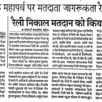 उत्तर प्रदेश भारत स्काउट गाइड बागपत एवं दिगंबर जैन महाविद्यालय आदर्श रोवर क्रू द्वारा महर्षि दयानंद पब्लिक स्कूल मलकपुर में रोवर लीडर डॉ महेश कुमार मुछाल जिला प्रशिक्षण आयुक्त उत्तर प्रदेश भारत स्काउट गाइड बागपत रवि कुमार एवं विजेंद्र सिंह के निर्देशन में रैली का मतदाता जागरूकता रैली का आयोजन किया गया इस मतदाता जागरूकता रैली का उद्देश्य था। लोकतंत्र के महापर्व पर लोगों को जागरूक करना। प्रत्येक व्यक्ति वोट डालें इसके लिए अलग अलग नारो को दुहराया अंकल आंटी मान जाओ ,वोट डालने जरूर जाओ। न नशे से न नोट से ,किस्मत बदलेगी वोट से। लोकतंत्र में हिस्सेदारी , हम सबकी है जिम्मेदारी। घर घर को संदेश दो ,वोट दो वोट दो आदि नारों के द्वारा मतदाता जागरूकता रैली आरंभ हुई । मतदाता जागरूकता रैली मलकपुर गांव में होती हुई महर्षि दयानंद स्कूल पर समाप्त हुई इस अवसर पर विद्यालय के प्रबंधक राजेंद्र सिंह ने विद्यार्थियों को संबोधित किया एवं मुछाल ने प्रत्येक वोट का महत्व बताया कि निर्वाचन के द्वारा 1 वोटका कितना महत्व होता है उसके उदाहरण प्रस्तुत किए और चुनाव प्रक्रिया में में मतदाता का मतदाता के वोट का महत्व बताया।