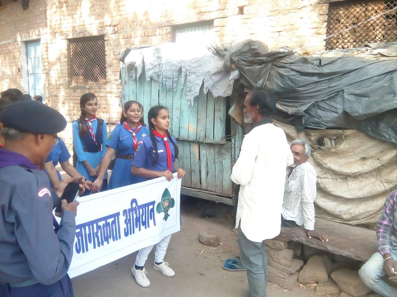 Voters Awearness program run up by Rover Rangers & scout Guides.program start from D H Q Madhav Chowk shivpuri.In form of rally we reached at mahal saray aadiwasi basti. Door to Door convey by rover ranger and scout guides to use their vote.D C C shree Tarun Agrawal were present in program. D T C Munnala sharma & Distt. coordinater Kapil singh sisodiya guided to rover rangers & scout guides.rover Vikas khatri & ronak ojha help in the program.