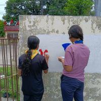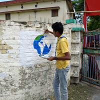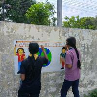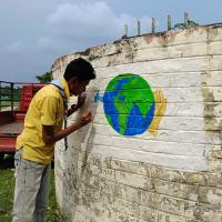 I along with my group had several blank walls in our environment and we drew some awareness pictures by painting them so that people would see them while walking through them and increase water and environmental awareness in their minds.