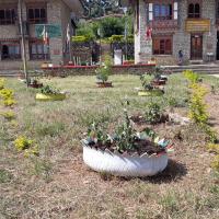 Scouts of Drukjegang Central School in Dagana make use of the waste plastic bottles, jar canes and tyres for decoration of their school campus. Students collect the unwanted plastic bottles from market, and use their creativity by creating flower pots, gardens etc.