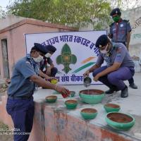During all these, we saw many clay pots on different different places after the Gangaur festival, we planned to collect them, after collecting the clay pots from all the places, we clearing them and giving them a new look by colour, After that we planted water and food feeder at many public places in Bikaner. This included many police stations and other places in Bikaner.Me and my group planted 450 clay pots in a one week.Our group has resolved to regularly fill up water and feeder for birds.We will continue this work in the future.