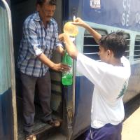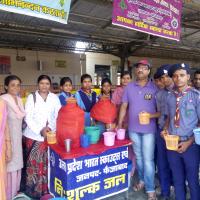 Members of the cultural & social organization ART OF LIVING also served cold watwr to d passenger with us.they appreciated services of scout and Guides.