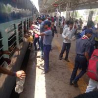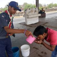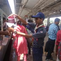 gorakshnath open rover crew doing water service at mathura junction railway station