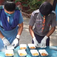 A project of 20 days i.e Water/Food distribution point was organised by the Bargaon ITI group of Odisha State Bharat Scouts and Guides at State Training Center Bargaon ITI. During this second wave of COVID-19 lock down all the markets, hotel, resturants are closed on basis of govt. guidelines. at that time our bargaon ITI group take a decision and step out for the needy people. After that we started an initiative there the rovers and rangers were distributed water, cord water,lunch packets to the needy people. Sanitized their hands and aware them about the importance of Hand washing and sanitize. We also distributed Double layer handmade masks and tell them why the masks are very important for us. we distributed 20-25 lunch packets and 50 masks daily.