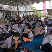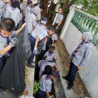 Peserta bergerak ke sekolah dalam keadaan yang tersusun dan berhati-hati. Peserta seterusnya membersihkan kawasan longkang disekitar kawasan sekolah. Mereka bertungkus lumus membersihkan longkang yang tersumbat akibat perbuatan menusia yang tidak bertanggungjawab membuang bahan buangan di dalam longkang. Para peserta diberi nasihat agar tidak mengikut perbuatan dan sikap yang buruk tersebut. Setelah selesai mengumpul bahan buangan di kawasan sekolah, mereka berkumpul di padang sekolah untuk mengambil gambar bersama-sama. Peserta kemudian dibenarkan untuk menjamu selera di kantin sekolah