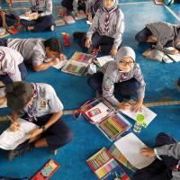 Aktiviti seterusnya adalah pertandingan mewarna poster bulan keamanan sedunia. Peserta diberi penerangan dan dibenarkan untuk mula mewarna. Masa yang diperuntukkan kepada mereka ialah 2 jam. Sementara peserta sedang mewarna, pihak SWM Environment telah membuka tapak pameran. Banyak barangan yang dihasilkan dari bahan buangan contohnya seperti kerusi yang diperbuat daripada tong dram terpakai, kerusi yang dihasilkan daripada kertas terpakai, dan kerusi yang dihasilkan daripada tayar terpakai. mereka juga mempamerkan maklumat tentang kitar semula.