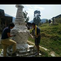 White washing community stupa
