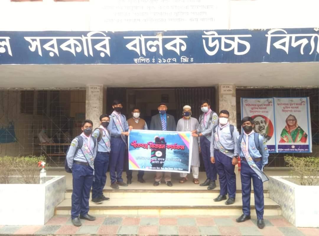 The work started form collecting winter clothes. We collected winter clothes from our scouts , school students and teachers. We also rised a fund and bought some . Then we select some poor guys who badly need those clothes and told them to come in our school ground. Then we started to distribute. And the next day we found some wall of humanity and putted some clothes there.