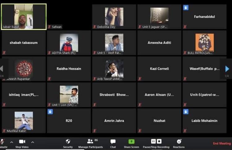 We used the platform called ‘Zoom’ to hold these troop meetings. And we took sessions on different topics by dividing scouts according to their Stage