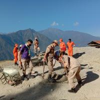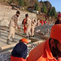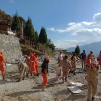 The total of 31 individuals consisting of rover scouts and Desuups had provided the community service in constructing foot path along with the hostels of the Raphey Lhakhang; Kinga Rabten, Trongsa. The footpath would benefit the young monks through harsh weather of rainy/muddy summer and dusty winter days.