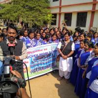 The scouts and Guides of Ganjam District Bsg Odisha giving tribute to the world hockey man's tournament by human formation...