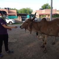 To fulfill the duty to nature, We Rangers( Ritika Solanki, Annu Deora) Of Pushtikar Mahila Mahavidhalaya went outside by bicycle, for watering plants around us, in those area where no one is living and no one else giving water to plants and also feed dogs, and birds also. It was a great experience to love nature, because we also got lot of love from them.
