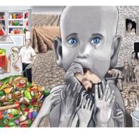 (4) You may exhibit children paintings on hunger from a set of a painting which I am going to post here.,you may add yours too. You may post one of them on your notice board in your ofice or the window of a shop in your neightbor