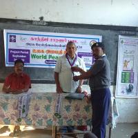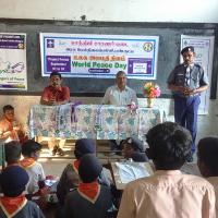 Today we celebrated the world peace day .Our HM presided over the function . Mr J Balachandar sir witnessed the function .They were given scarves .All the scouts wear the slash of scouts creats better world.and each scout select a student and they were declared as the Messenger of Peace by slashing the MoP belt.they fed sweats to each other .