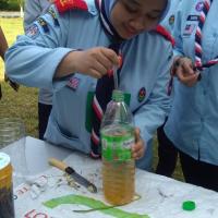While for clean water practical, scouts required to obtain water samples from the lake nearby and test its dissolve oxygen content. Dissolve oxygen content or DO are used to monitor the water quality. Low DO results can indicate the chances of Eutrophication. Eutrophication occurs when the algae accumulation on the lake surface causes the lake to have low oxygen content as aquatic plants cannot undergo photosynthesis. Moreover, the decay of substance increase the bacteria accumulation as aquatic animal die due to lack of oxygen. This will cause the ecosystem to be imbalance. Thus, monitoring of water DO must be conducted.