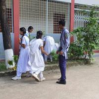 On the occasion of world scout scarf day, the members of Tejgaon Government High School Scout Group carried out clean and tree planting activities in the school.