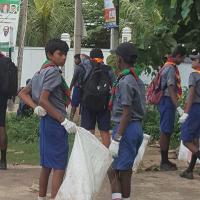 kankesanthurai scouter collected all plastic and polythene waste on road of kankesanthurai road