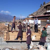 120 new scout members along with 40 Teacher are cleaning road side and contrubiting labour force to Dungtse Lhakhang, Paro.