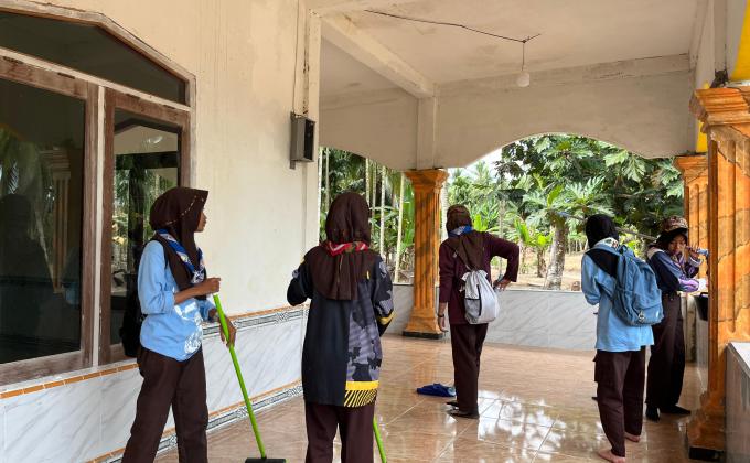 Membersihkan mesjid untuk menyambut bulan ramadhan