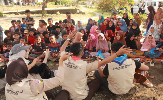 Pramuka Peduli Kwartir Daerah Aceh Bersama DKC Bener Meriah Gelar Trauma Healing untuk Korban Banjir dan Tanah Longsor Aceh