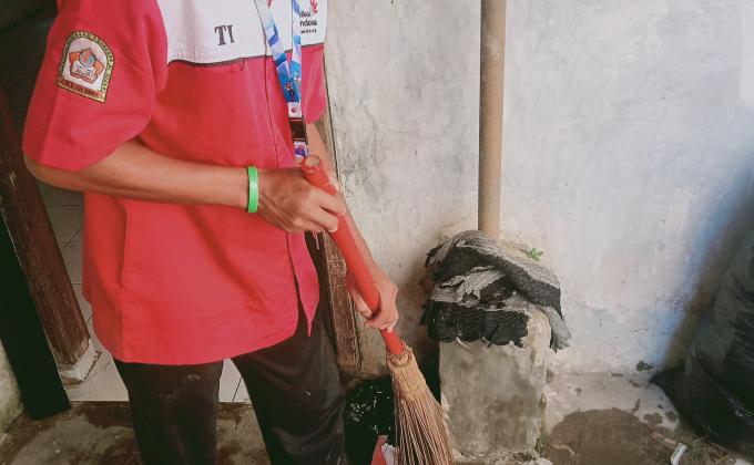 Membersihkan halaman di Tempat PKL