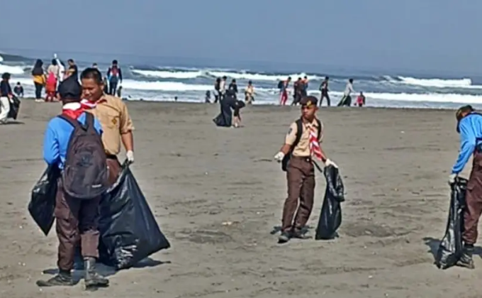 Pramuka Yogyakarta Bersihkan Pantai Parangkusumo