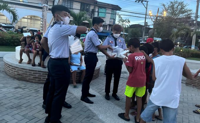 RCU08 handout foods to children at Cabanatuan