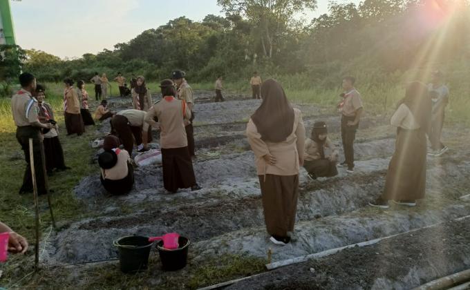 Penyiraman Tanah Oleh Anggota Pramuka SMKN US