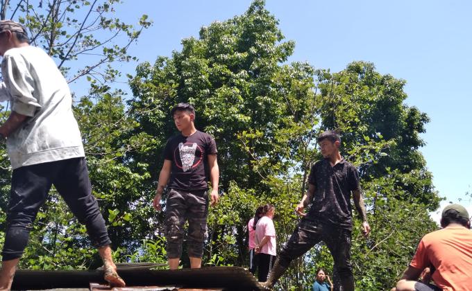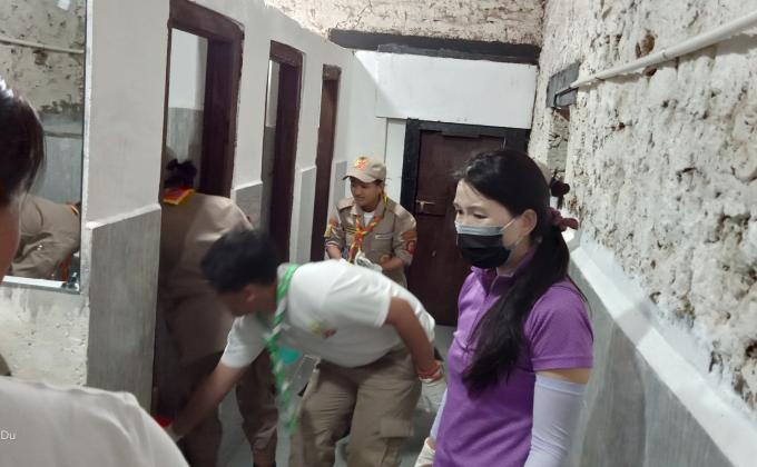 cleaning toilet and surrounding at semtokha dzong