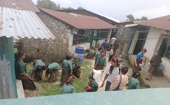 Read more about cleaning toilet and surrounding at semtokha dzong