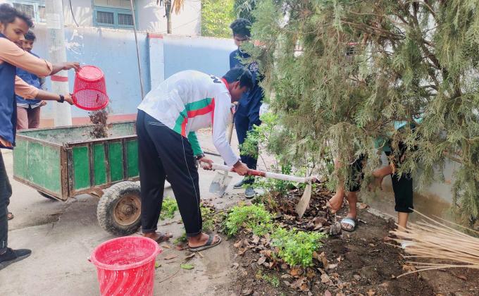 গাছের ঝরে পড়া পাতা পরিষ্কার কার্যক্রম