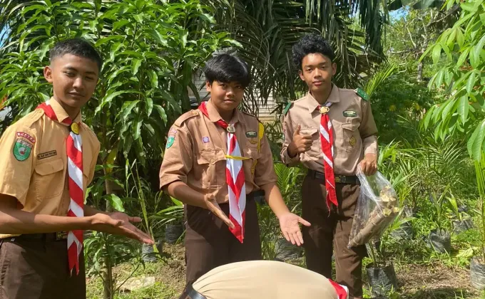 Bersihkan sampah di SMP/SMA Xaverius 1 Jambi