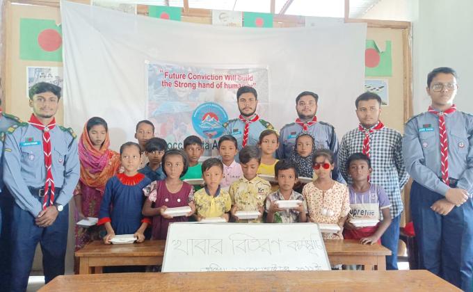 সুবিধাবঞ্চিত শিশুদের মাঝে খাবার ও মাক্স বিতরন।