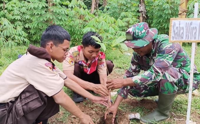 Pramuka Tanam Pohon Mahoni di Desa Brondong