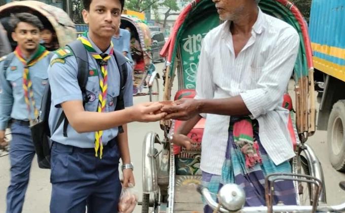 তীব্র গরমে মানুষদের তৃষ্ণা মেটানোর জন্য পানি বিতরন