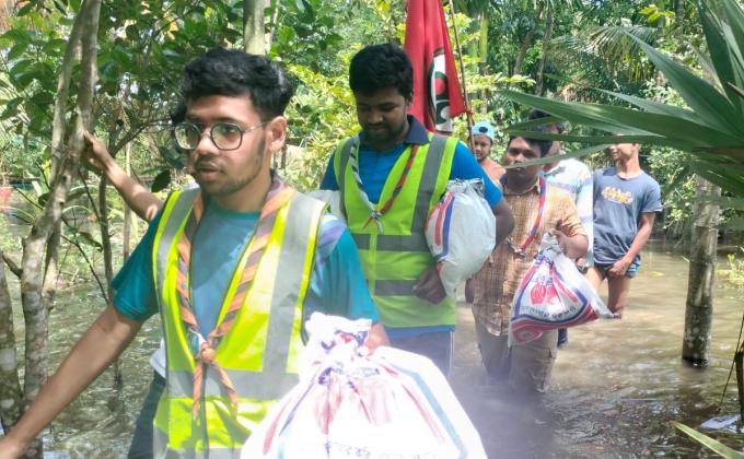 মৌলভীবাজারে বন্যার্তদের মাঝে ত্রাণ বিতরণ।