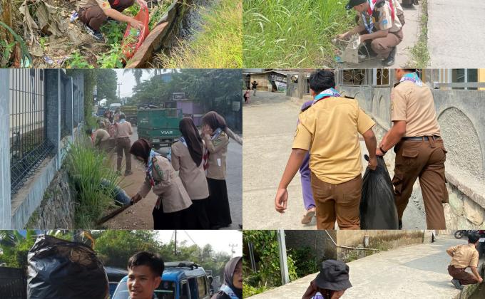Karya bakti di lingkungan sekolah dan masyarakat.
