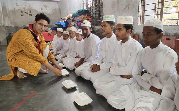 মাদ্রাসা ছাত্রদের মাঝে ইফতার বিতরণ
