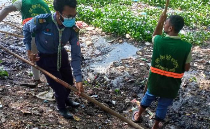 স্কাউট ও রোভারদের সহযোগিতায় ঝিল পরিষ্কার অভিযান।