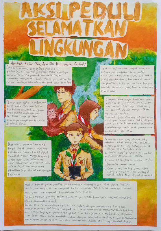 yang ingin saya sampaikan melalui poster saya adalah mengenai pemanasan global dan salah satu dampak serta penyebab dari hal itu, yaitu tentang kebakaran hutan, pentingnya hutan dan pohon, serta salah satu faktornya yaitu sampah. poster saya menjelaskan penting kesadaran akan pentingnya hutan dan pohon, cara menjaga atau pun melindunginya, dampak bila tidak adanya hutan maupun pohon, serta saya juga menjelaskan bahaya dari sampah yang menjadi salah satu faktor pemanasan global dan beberapa cara mudah yang bisa kita lakukan untuk mengurangi sampah agar menurunkan tingkat pemanasan global.