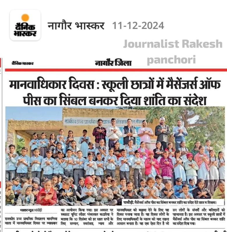 राजकीय उच्च प्राथमिक विद्यालय बामणियावाला में अंतरराष्ट्रीय मानवाधिकार दिवस के अवसर पर व्याख्यान का आयोजन किया गया। इस अवसर पर स्काउट यूनिट लीडर भंवरलाल कटारिया ने बताया कि इस वर्ष 10 दिसंबर, 2024 को मानवाधिकार दिवस "सभी के लिए सम्मान, स्वतंत्रता और न्याय" और मानवाधिकार को बढ़ावा देने के रूप में मनाया जा रहा है। संयुक्त राष्ट्र संघ ने माना है कि "कहीं का भी अन्याय हर जगह के न्याय के लिए खतरा है।" संयुक्त राष्ट्र महासभा ने मानवाधिकारों की सार्वभौमिक घोषणा में मानव के वे बुनियादी अधिकार हैं जो हमें अपनी सुरक्षा और संरक्षण सुनिश्चित करने के लिए दिए गए हैं। वे सार्वभौमिक हैं, जिसका अर्थ है कि वे जाति, लिंग, आयु या राष्ट्रीयता की परवाह किए बिना , बिना किसी अपवाद के सभी पर लागू होते हैं। और सभी को समानता का संरक्षण मिलता है