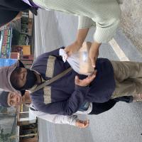 Berbagi makanan kepada masyarakat sekitar.